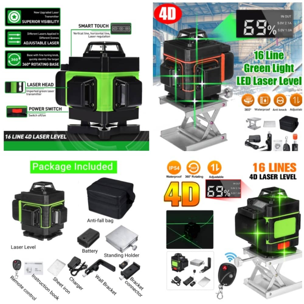 Модель справляется с работой любой сложности. Это достойная альтернатива брендовым нивелирам. Конструкция разработана по схеме четырёх плоскостей (16 линий проекцией на 360°).