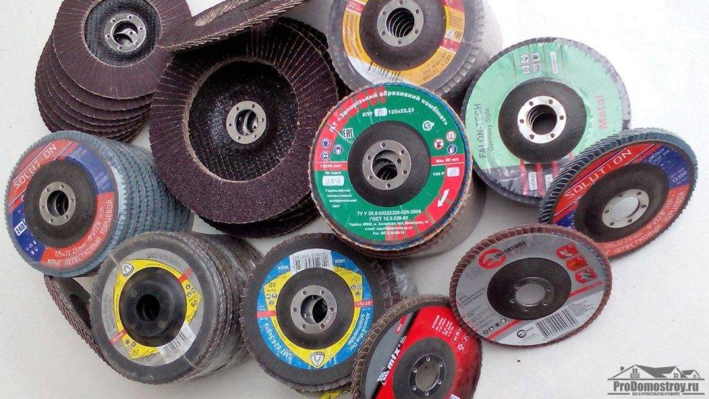 Широкое распространение получил лепестковый диск для болгарки. Данный инструмент состоит из круга (основы), по краям которого фиксируются лепестки наждачной бумаги. Они могут иметь разную зернистость. Этот показатель подбирается в зависимости от характера работы.