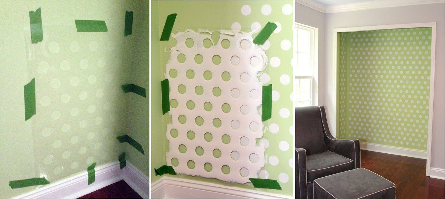 при работе с поролоновой губкой, нужно пробовать первые оттиски на старых полотнах обоев. Это поможет убрать излишки красящего вещества;