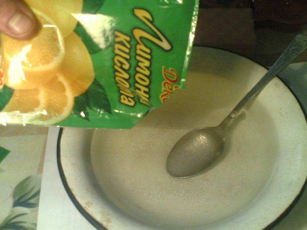 - Лимонная кислота. Используется такой же алгоритм приготовления, но только учтите, что гранулы могут не раствориться и осесть на дне. Они не дадут никакой реакции и так и будут лежать. Чтобы избежать, сначала разведите порошок и только потом добавляйте его.