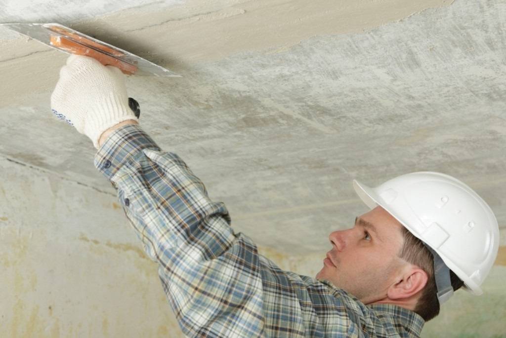 Шаг 3. С помощью небольшого шпателя заделываются трещины и дефекты потолка.
