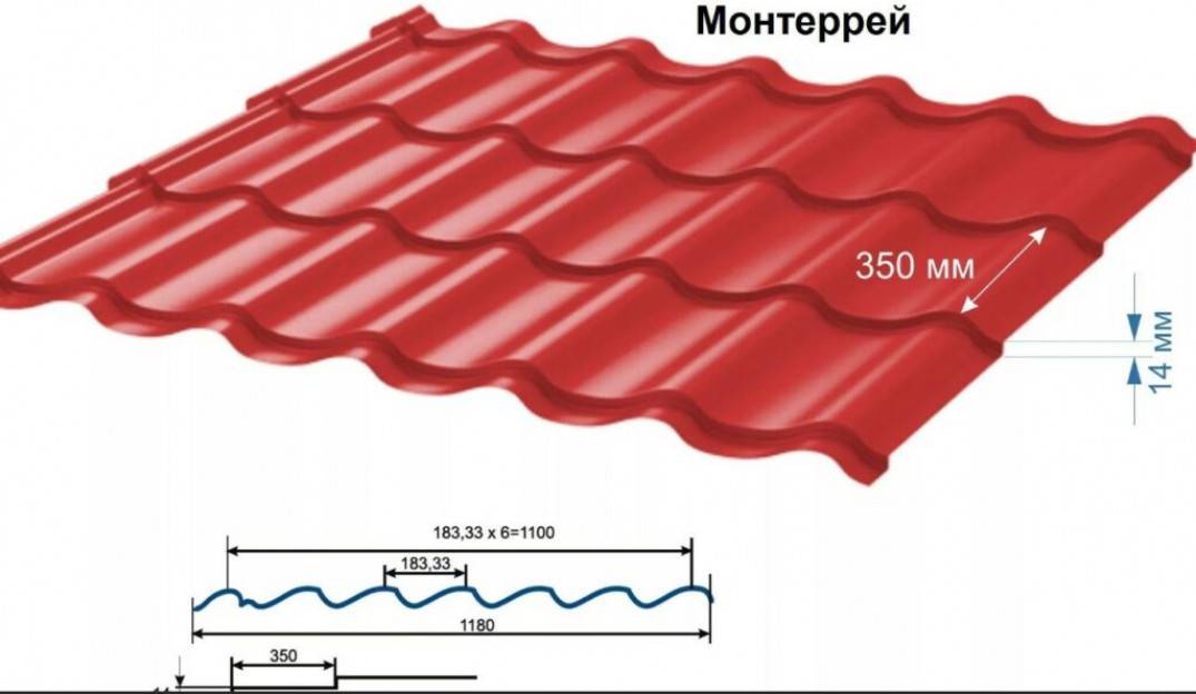Монтеррей. Классическая форма черепичного покрытия в финских традициях. Скругленные грани, невысокая волна, плавные изгибы — отличительные черты геометрии этого профиля. Разновидности — СуперМонтеррей, Макси.
