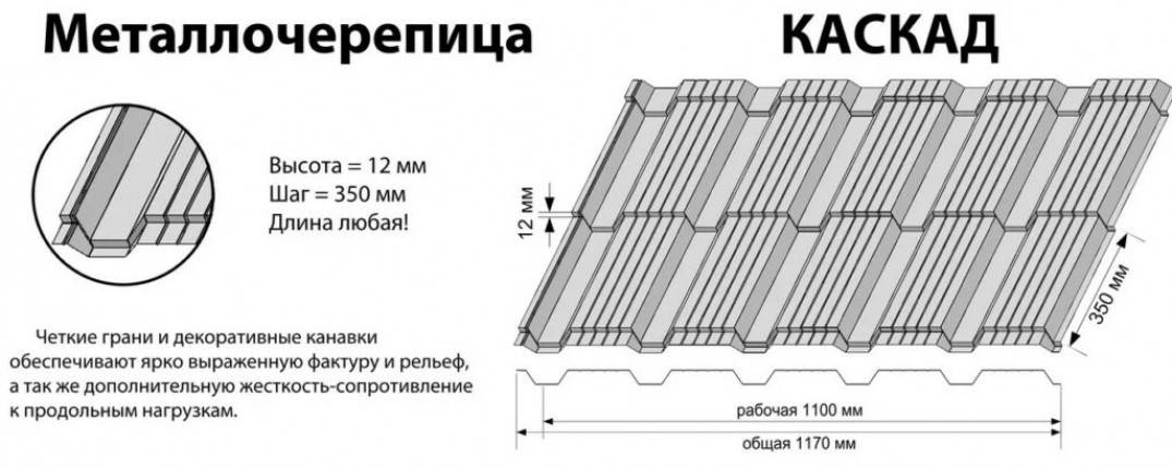 Каскад. Профиль напоминает наплывающие друг на друга прямоугольные пластинки. Волны четко очерчены, грани прямые и строгие. Удобно стыкуется с ендовами или разжелобками, поэтому применяется для строительства сложных кровель. Разновидность — МаксиКаскад с удлиненной волной.