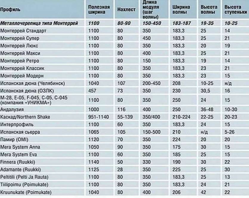По стропилам на уложенный гидроизоляционный материал прибиваются стропильные планки толщиной 40…50 мм, а к ним — антисептированные доски обрешетки. Особенности укладки профнастила в зависимости от угла наклона кровли показаны в таблице 3.