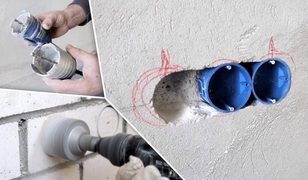 Как сделать отверстие для подрозетника в стену из гипсолита, кирпича и бетона?