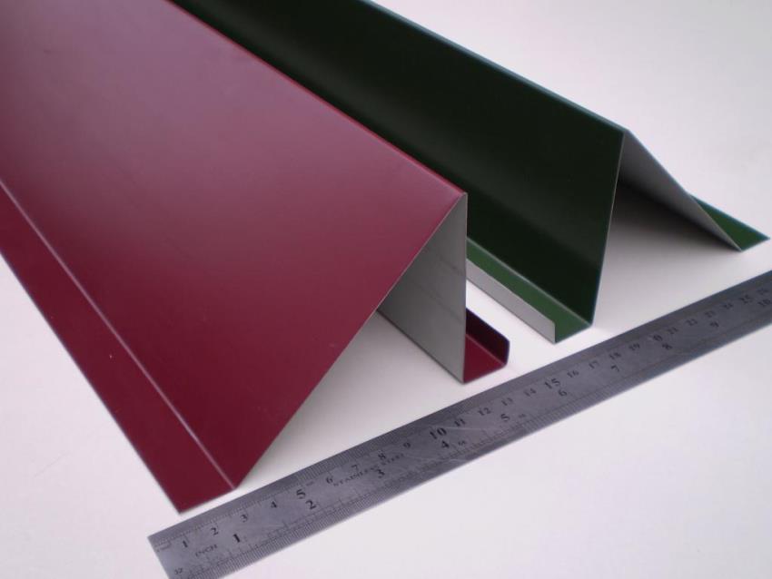 Ширина уголка соответствует длине одного ряда черепицы. Верхней его гранью будет считаться та, которая образует прямой угол к плоскости крыши.