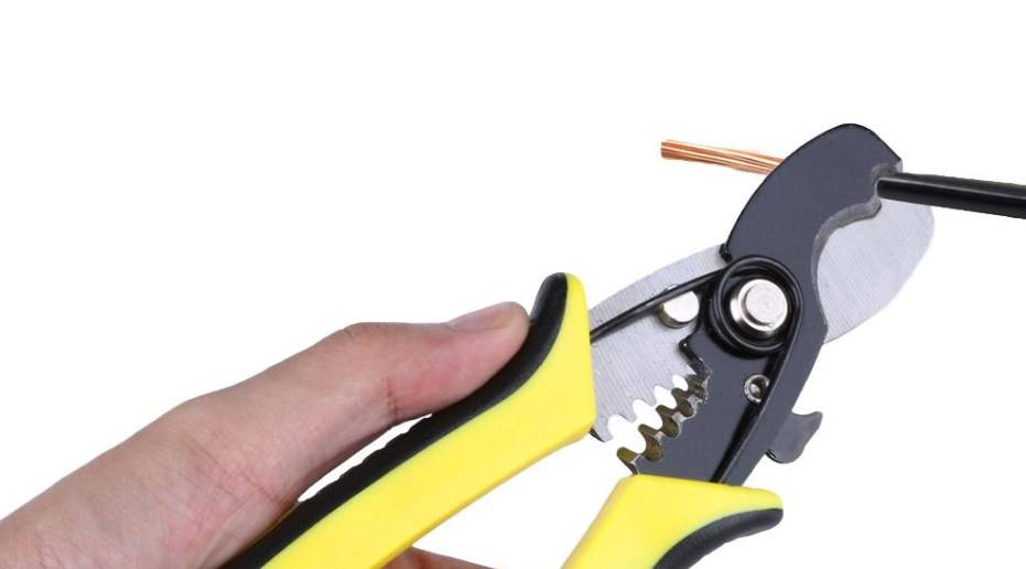 - С кабеля питания снимается верхняя оболочка до 8 см и раскручивается на части. Один провод оставляют длинным для заземления, все остальные обрезают на 3 см. Все проводки зачищают до 6 мм.