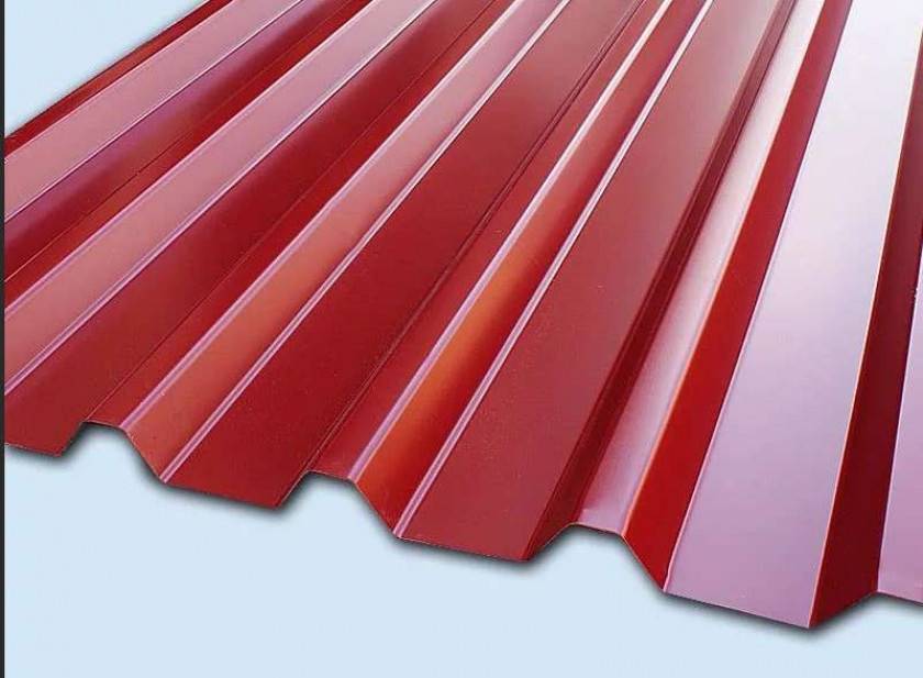 Важно! Профнастил представлен специальным современным материалом, применяемым повсеместно для создания кровельного покрытия, причем для его производства используется тонкий лист стали, прошедший через процедуру холодного проката. Заготовки из стали в процессе производства покрываются специальным цинковым сплавом, а также разными полимерами и красящими составами