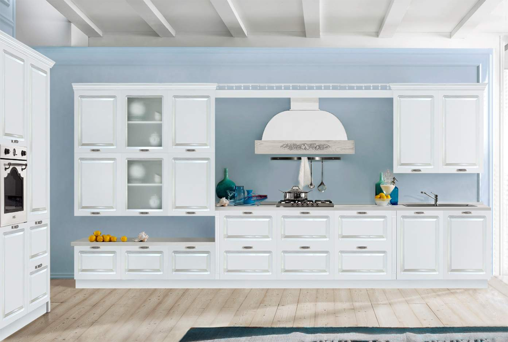 Выразительный внешний вид. Фасады имеют одинаковое рельефное обрамление. Оно контрастирует с центральной вставкой по цвету либо имеет один с ней оттенок. Рельеф рамки может быть двух-, трехступенчатым, ровным и выступающим вперед, округлым и т.п. Если для панельных фасадов оформление выбирается целиком, то для рамочных кухонь можно отдельно подобрать внешний вид рамки и центральной вставки.