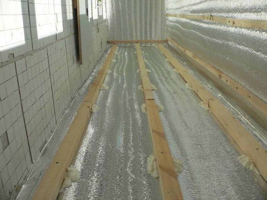 Для улучшения экономических показателей, можно утеплить полы балкона (лоджии) дополнительно пенофолом. Он будет отражать ИК-излучение в сторону комнаты. Такая основа не лучшим образом подходит под ламинат, ковролин, деревянные доски. Чтобы повысить теплопроводность верхних слоев, рекомендуют монтаж керамической плитки. Наливные теплые полы также эффективны. Достаточно выбрать соответствующие наполнители – не понадобится дополнительное улучшение внешнего вида балкона (лоджии).