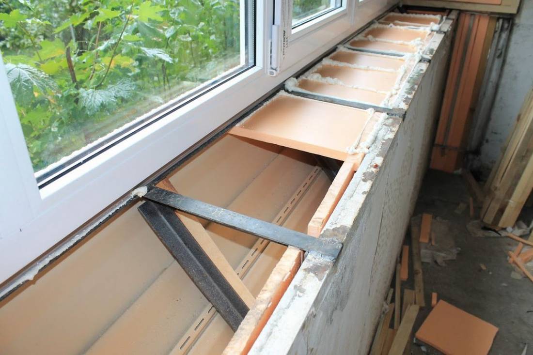 Следует знать, как правильно утеплить балкон изнутри с увеличением полезной площади. В простейшем варианте самостоятельно можно вынести за имеющийся контур балкона (лоджии) подоконник. Остекление сдвинется наружу на соответствующее расстояние (25-35 см).