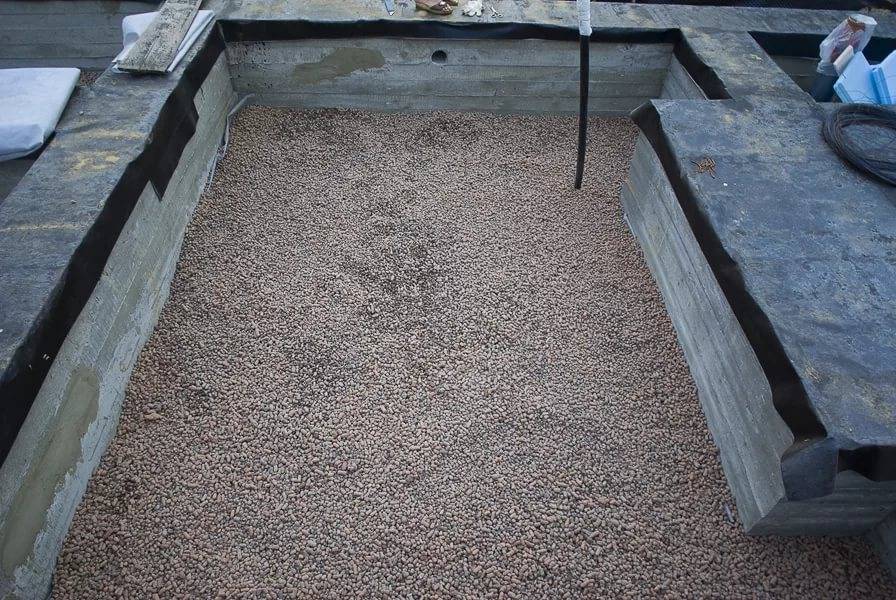 - В завершение нижняя часть конструкции засыпается керамзитом.