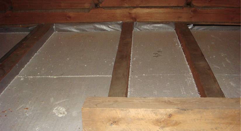 Некоторые владельцы в целях экономии оставляют между досками промежутки, сверху кладут пленку и засыпают шлаком, считая, что в каркасном доме такое утепление потолка вполне уместно. Но это не лучшее решение, так как шлак весит немало и может прорвать пленку острыми фрагментами.