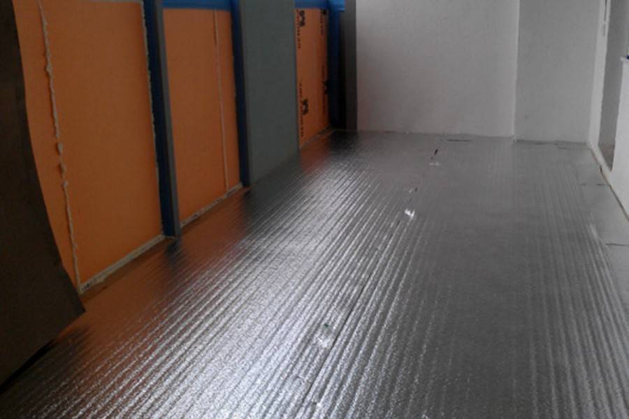 - Сверху пенополистирола устилается пароизоляция. В ее качестве выступает фольгированная изоляция, рекомендованная толщина которой составляет 10 мм. Иногда ее монтируют в два ряда. Для удобства монтажа производители выпускают рулонные утеплители, покрытые с одной стороны самоклеящимся слоем. В таком случае не понадобится делать сквозные отверстия в изоляции, тратить время и крепежные изделия.