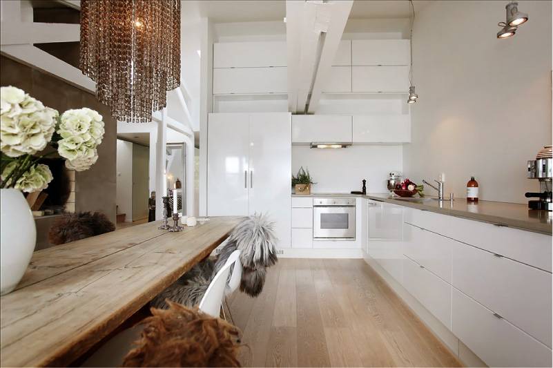 - Дерево. Белый идеально сочетается именно с деревом, на это построен скандинавский стиль.