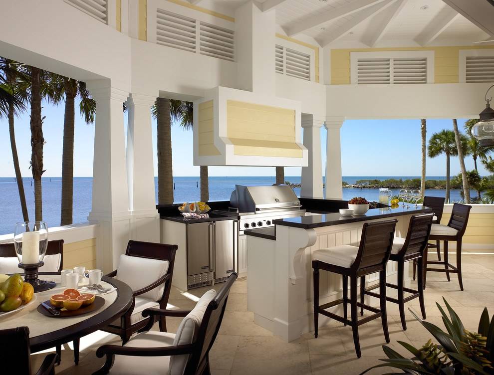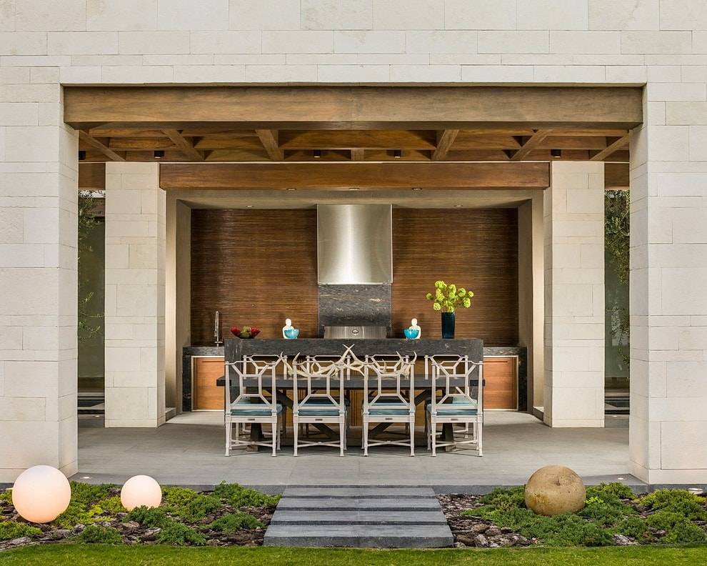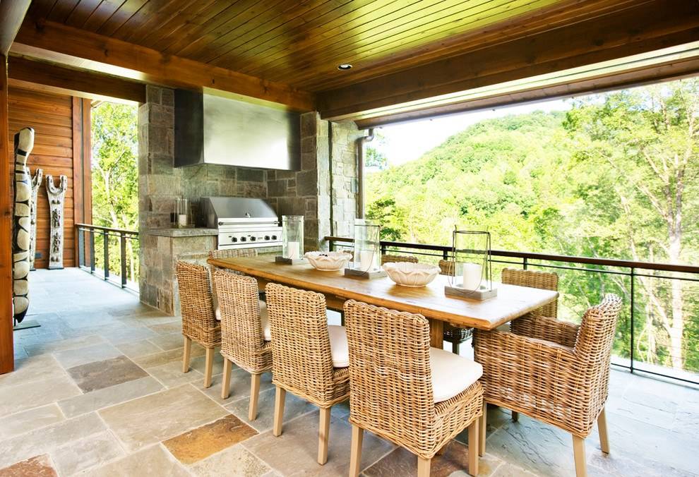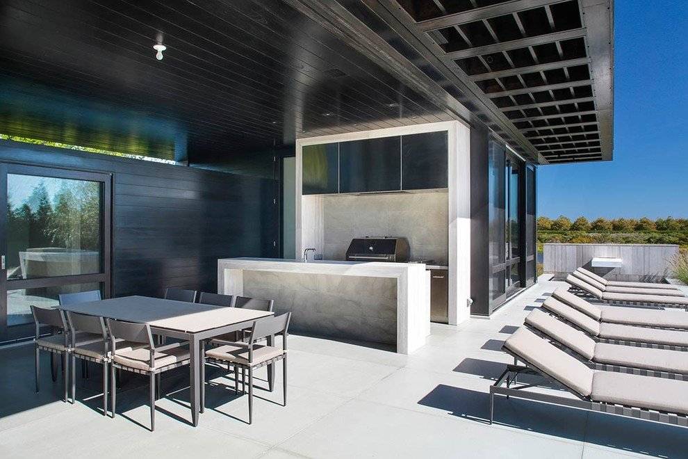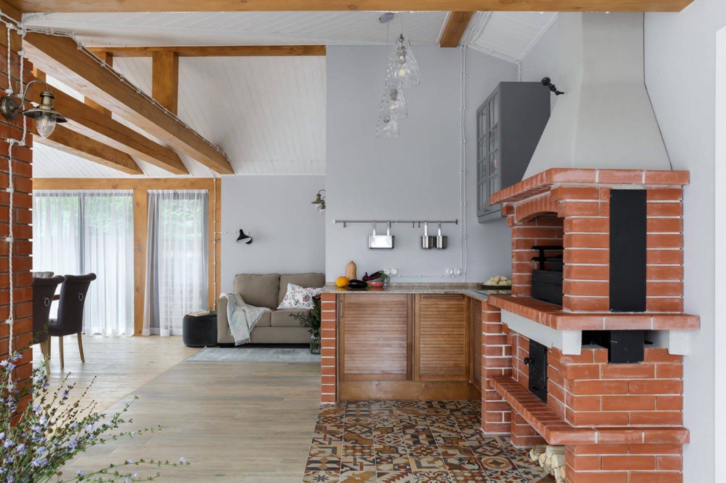 Частично открытая летняя кухня, примыкающая к одной из сторон дома