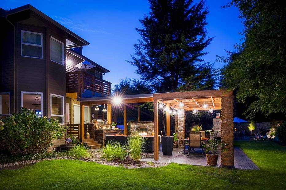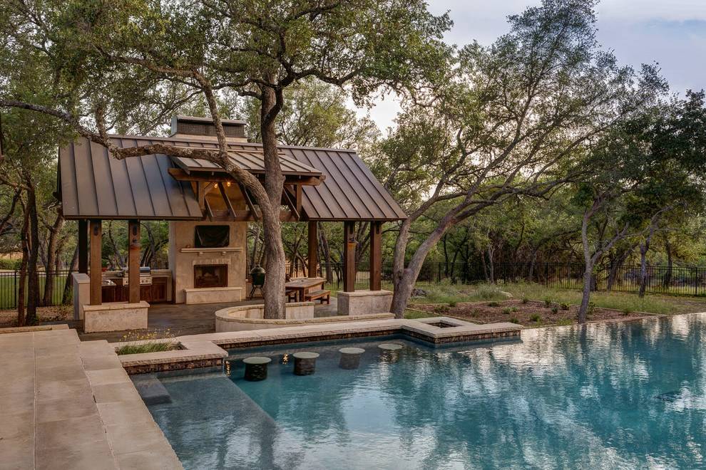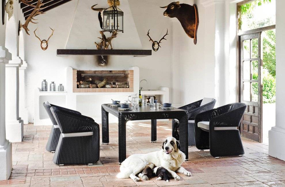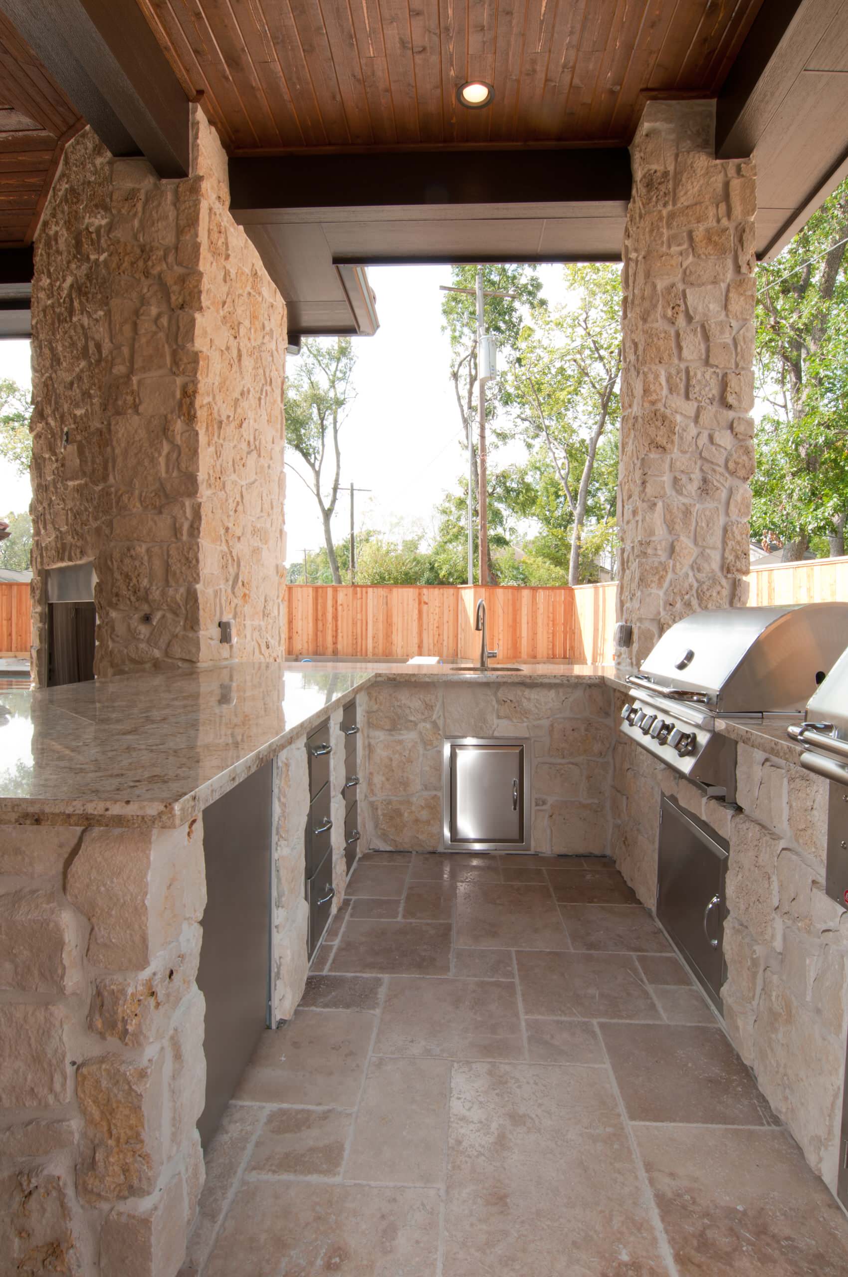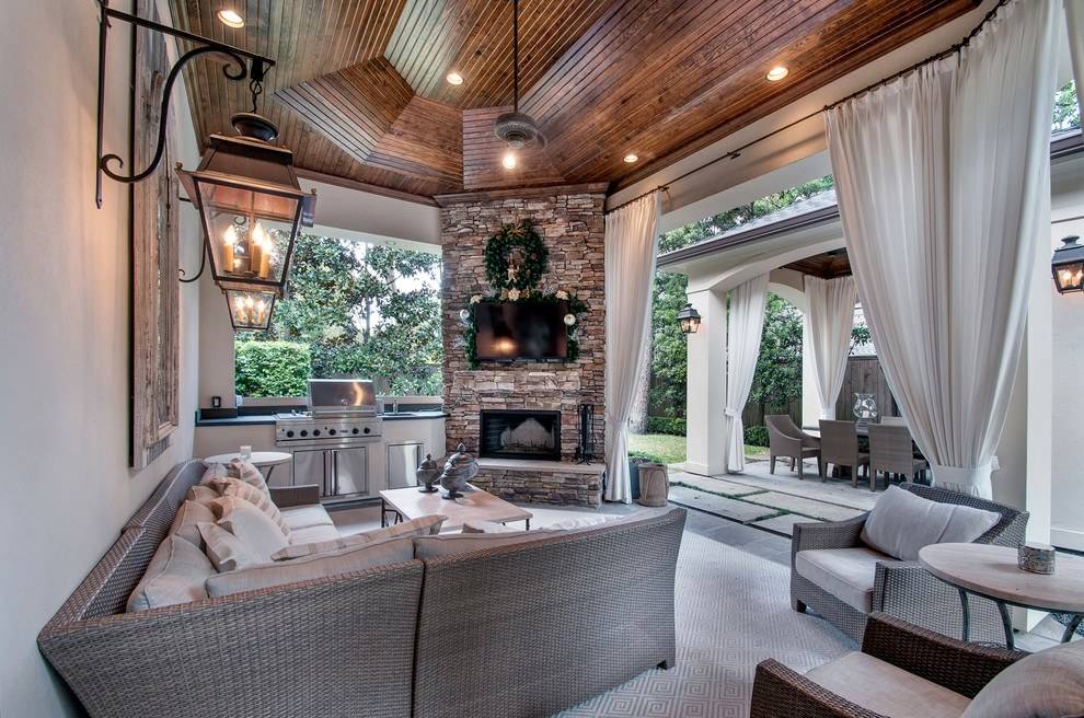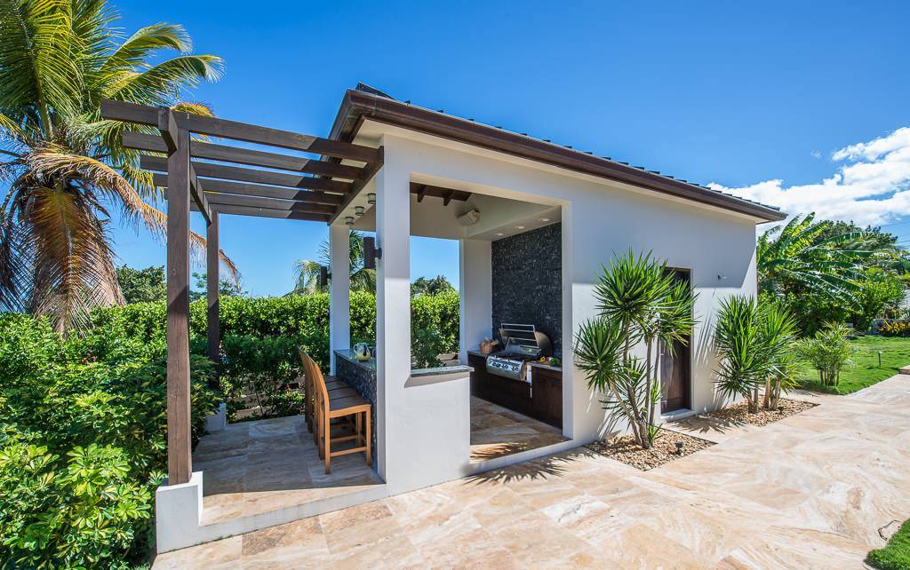 Частично открытая летняя кухня, примыкающая к одной из сторон дома