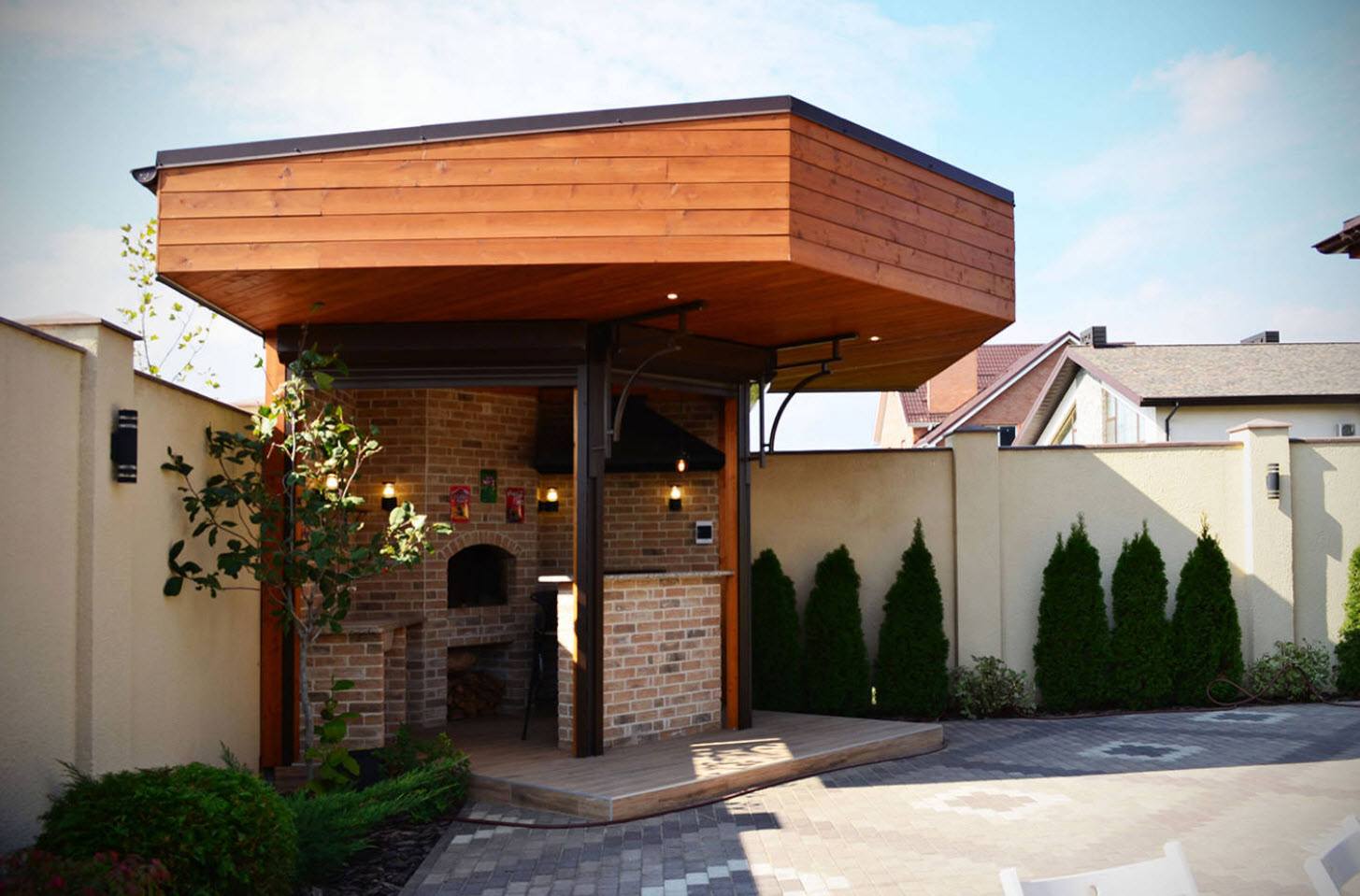 Исходя из планировки, использованных стройматериалов и направления стиля, летние кухни с мангалом бывают открытого и закрытого типа.