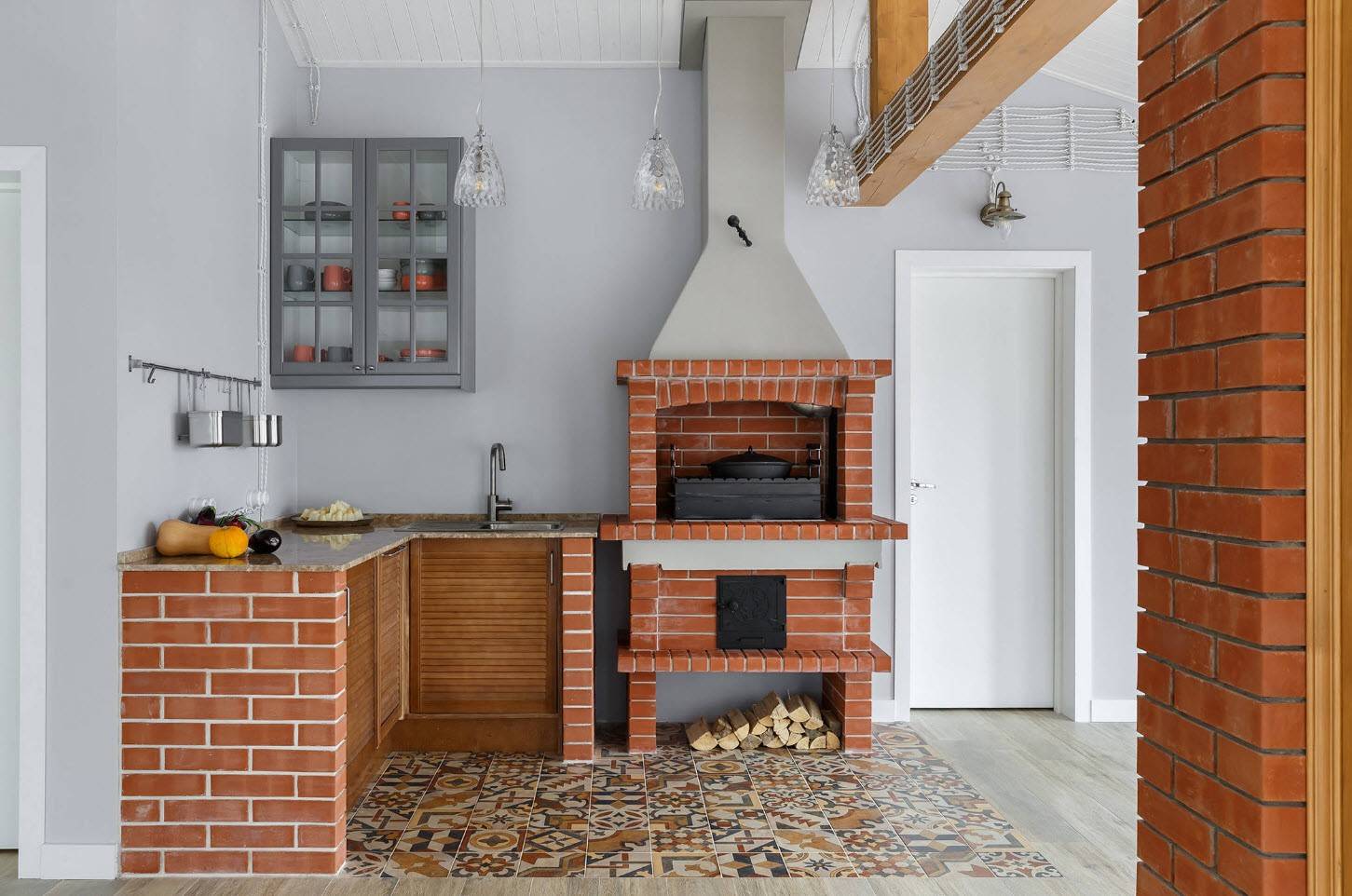 - если планируется возведение в кухне мангала, печи или барбекю, необходимо позаботиться о том, чтоб рядом не было легковоспламеняющихся построек (противопожарными нормами предусмотрено минимальная удаленность 7 м от других строений при площади участка в десять соток);