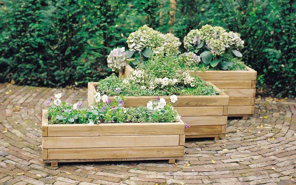Горшки заполняются почвенной смесью. Большую часть занимает компост. Затем высаживаются растения. Поверх выкладывается мульча, которая защищает землю от пересыхания. Чтобы предотвратить гниение древесины рекомендуется обработать поверхность лаком. Это позволит увеличить срок изделия.