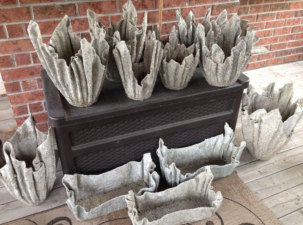 Создавая вазоны из цемента, следует позаботиться о том, чтобы формы была на возвышенности и края ткани свободно свисали. Но при желании края можно сделать и закругленными, располагая их вокруг емкости по земле в виде складок, лепестков цветов.