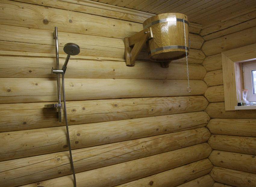 Никаких сложных конструкций и высокотехнологичных устройств нет. Это обычное ведро, не пластиковое конечно, а из дерева, в тон внутренней отделке, подвижно закрепленное на стене. По вместительности оно может быть больше стандартных 10 литров. Свободным движением руки, потянув за шнурок или хромированную цепь, кому как нравиться, оно опрокидывается на посетителя, обдавая его потоком прохладной воды. Отпустив веревку, ведро возвращается в исходное положение и наполняется от центрального водоснабжения бани.