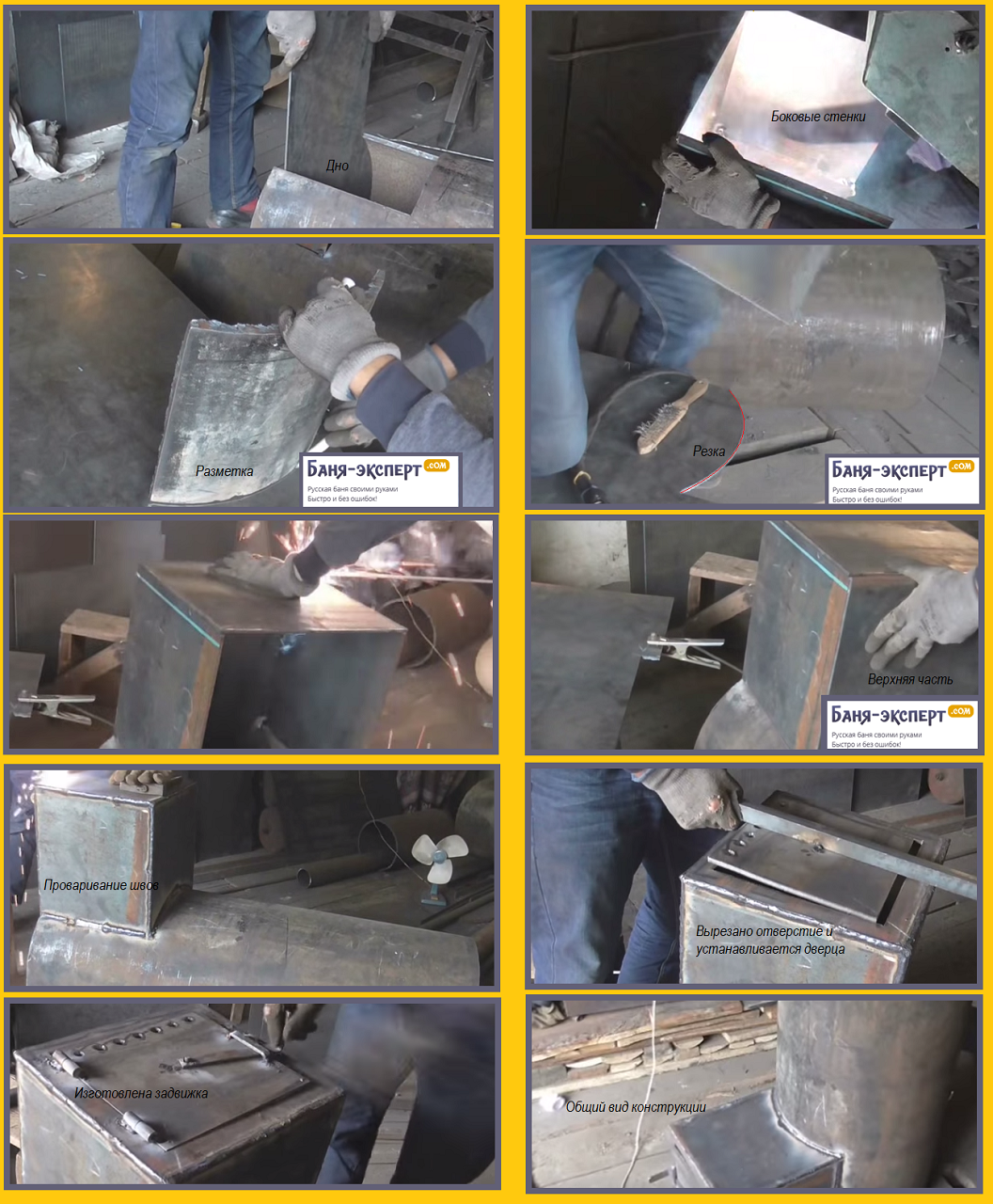 Изготовление банной печи самостоятельно возможно только в том случае, если мастер умеет обращаться со сварочным аппаратом. Процесс изготовления не сложен, но требует определенных знаний и навыков.