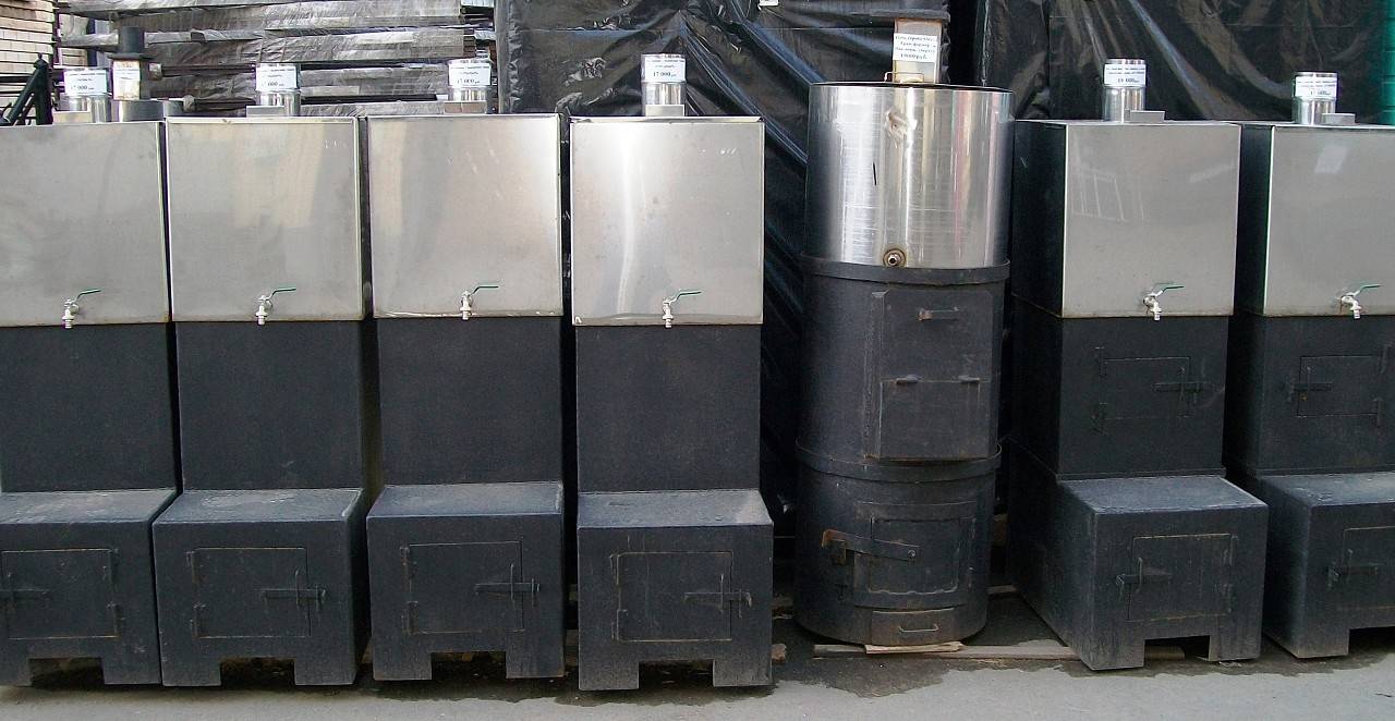 Печи для бани из трубы и стали. Конструкция печей одинакова – это корпус, разделенный на бак для воды, каменку, топку и зольник. Для разделенияя используются стальные листы и решетки. Из топки через бак и каменку выведена труба дымохода
