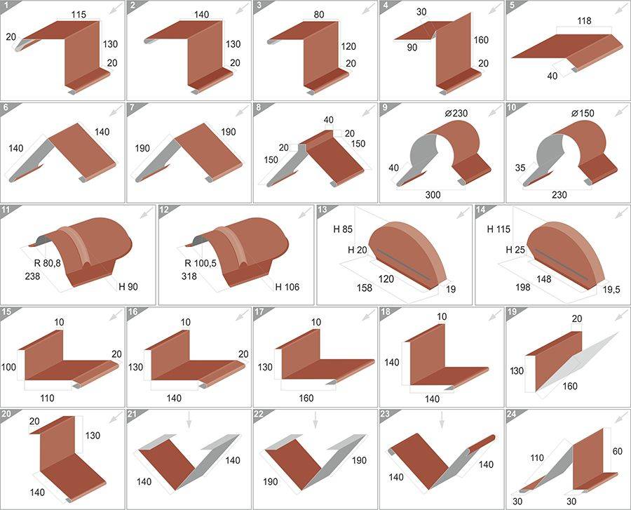 Все доборные элементы изготавливаются из тонкого листа стали или пластика. Стальные детали обладают преимуществом, они более прочные и долговечные. Их защищают цинковый слой, предохраняющий от коррозии, и полимерный слой, придающий нужный цвет.