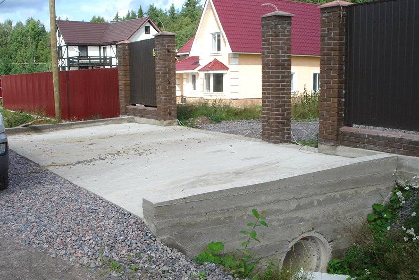 Учитывая вышеперечисленные требования, покрытие перед въездом может монолитным (плита из железобетона) или насыпным (щебень, гравий, шлак, песок).