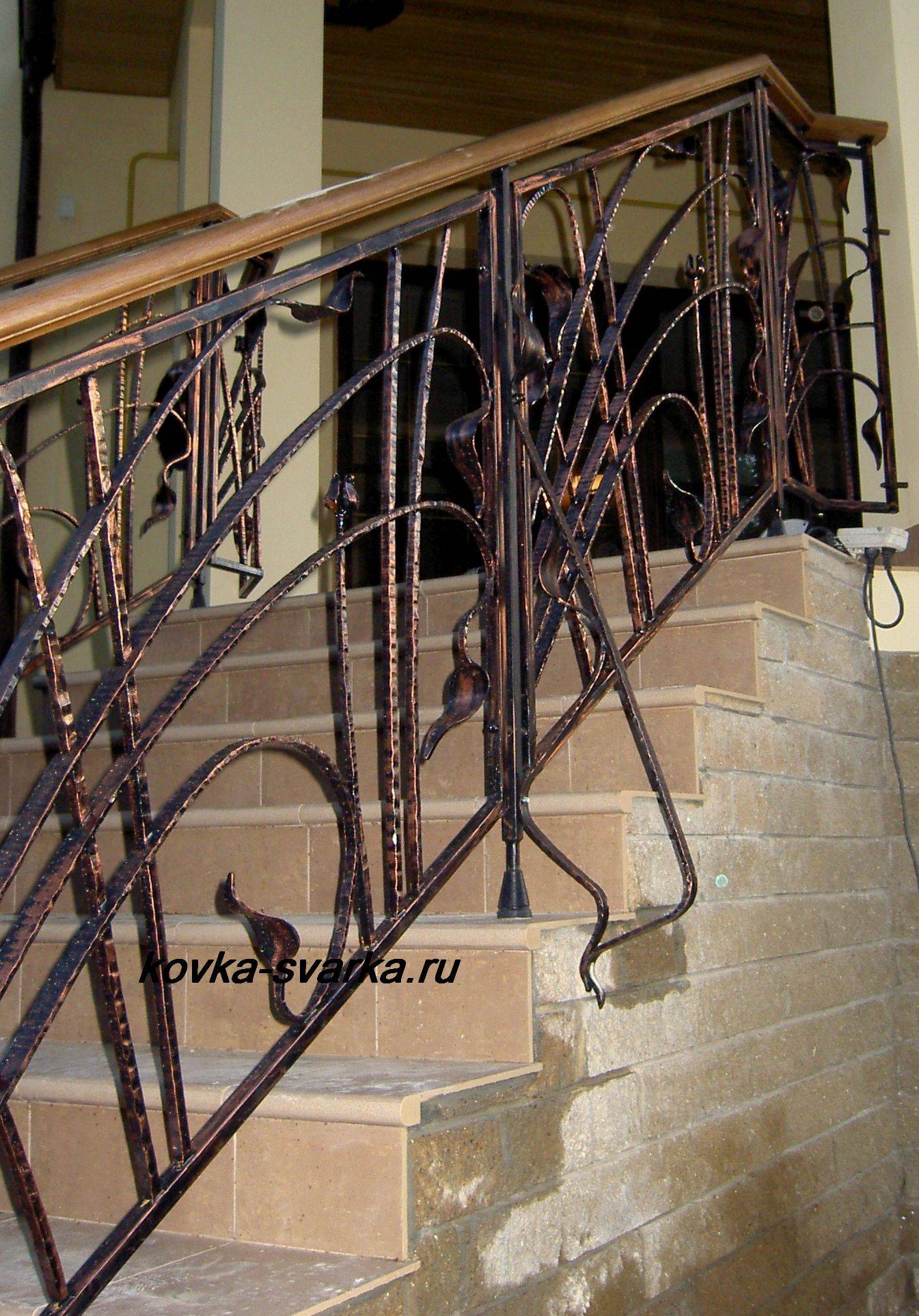 перила должны быть установлены и зафиксированы прочно, не качаясь. Чтобы добавить запас прочности, можно перила прикрепить к стене – кованый красивый кронштейн добавит надежности, не испортив привлекательности перил.