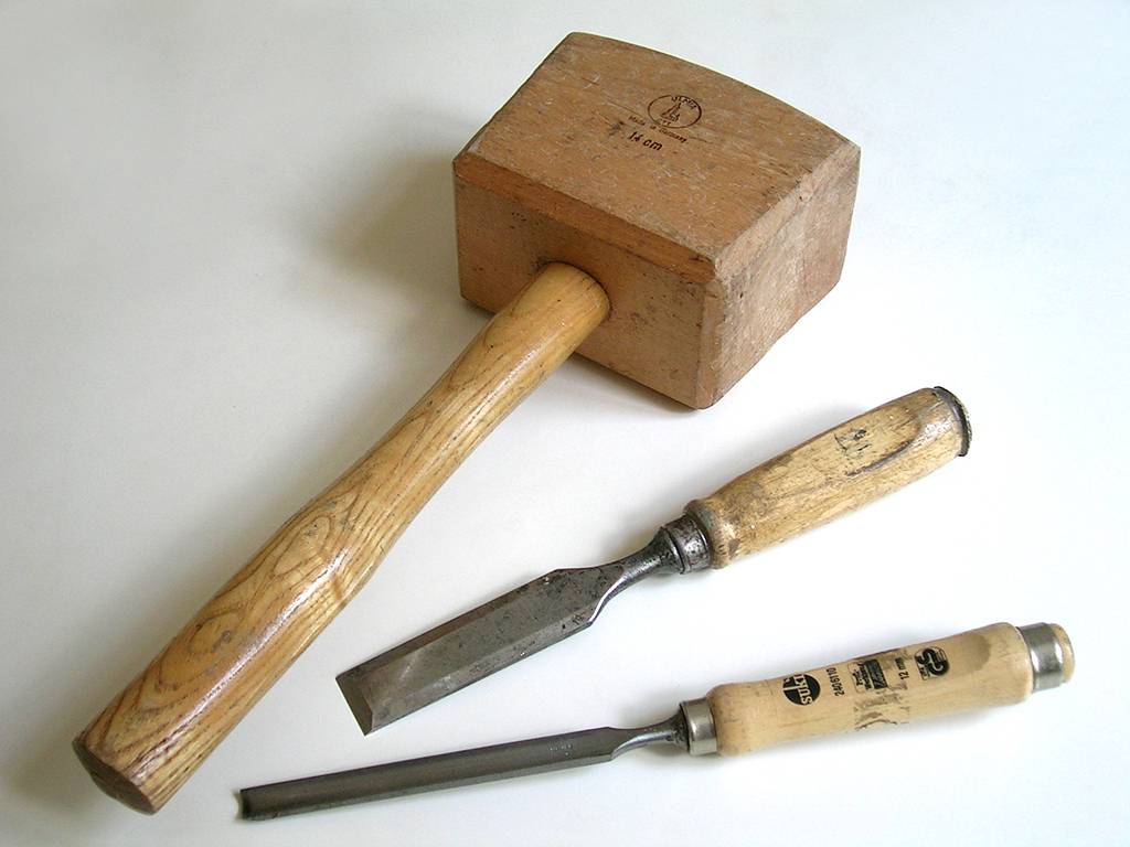 Молоток с ударной головкой из лиственной древесины. Киянкой пользуются при работе со стамеской, чтобы не повредить ее деревянную ручку, а также для забивания деревянных изделий в различные отверстия и пропилы.