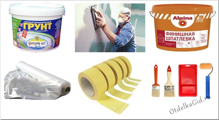 - Шпатлевка. При наличии большого количества дефектов потребуется стартовая и финишная шпатлевка. Если дефектов мало, то достаточно только финишной.