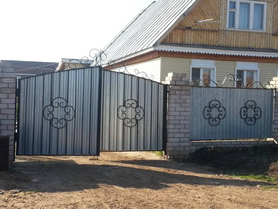 Откатные ворота смотрятся стильно и практично, но изготовить их самостоятельно намного сложнее. Поэтому мы рассмотрим, что нужно учесть на этапах планирования, сооружения и монтажа распашных ворот из профнастила – самых простых в установке.