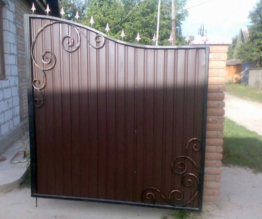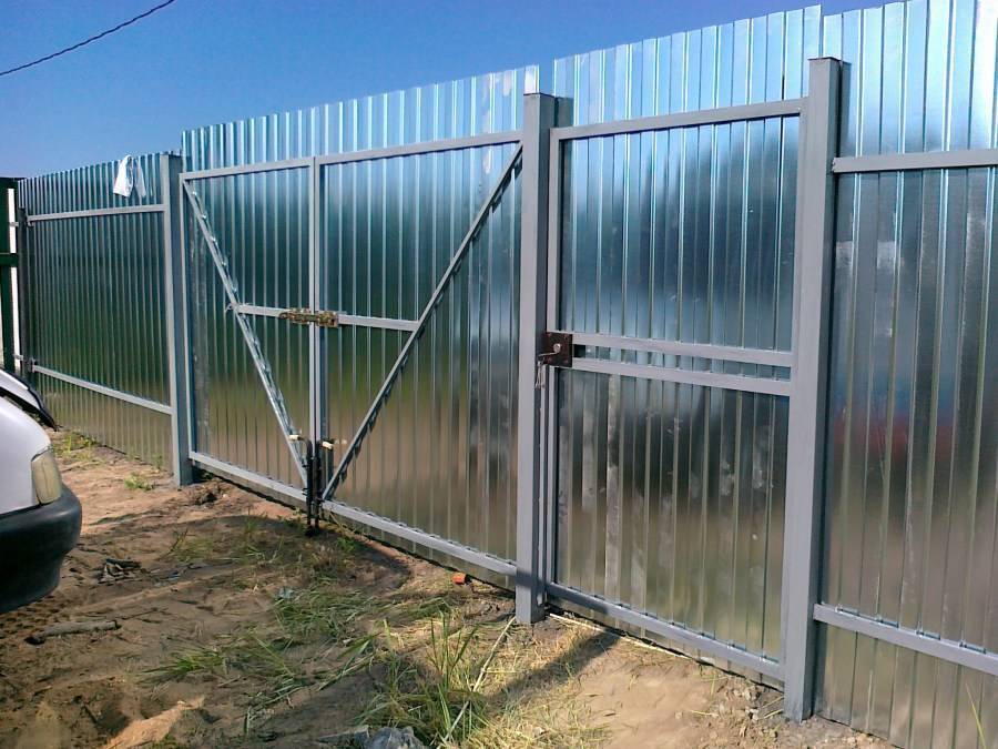 Что касается окраски или оцинковки, то желательно, чтобы профнастил на воротах был таким же, как и на заборе. Излишняя пестрость не прибавит эстетичности.