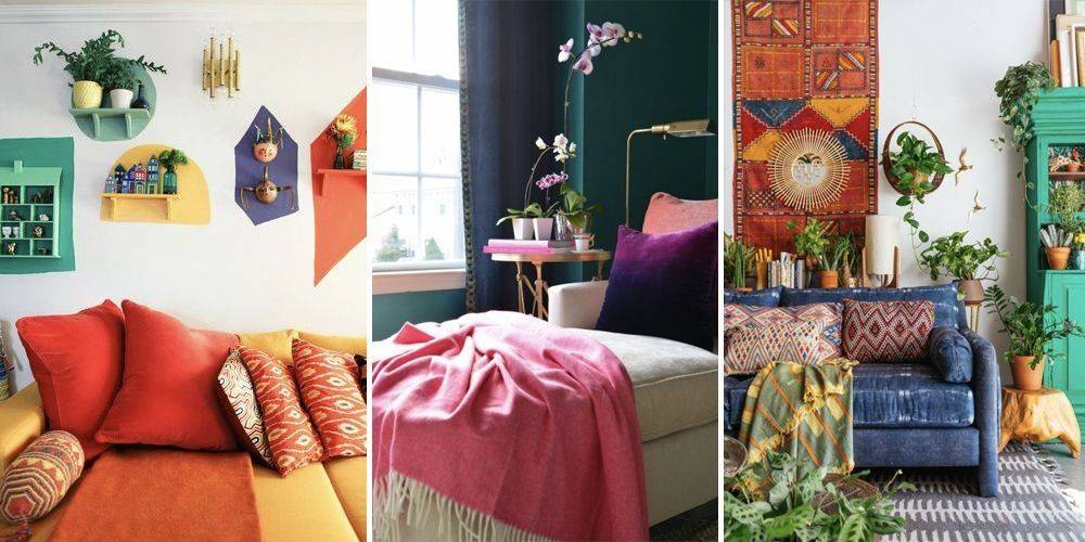 Такая схема подойдет не всем. Интерьеры с большим количеством цветов получаются яркими, интересными, но со временем утомляют. Подобный подход – хороший способ оформления восточных интерьеров или интерьеров в стиле бохо.