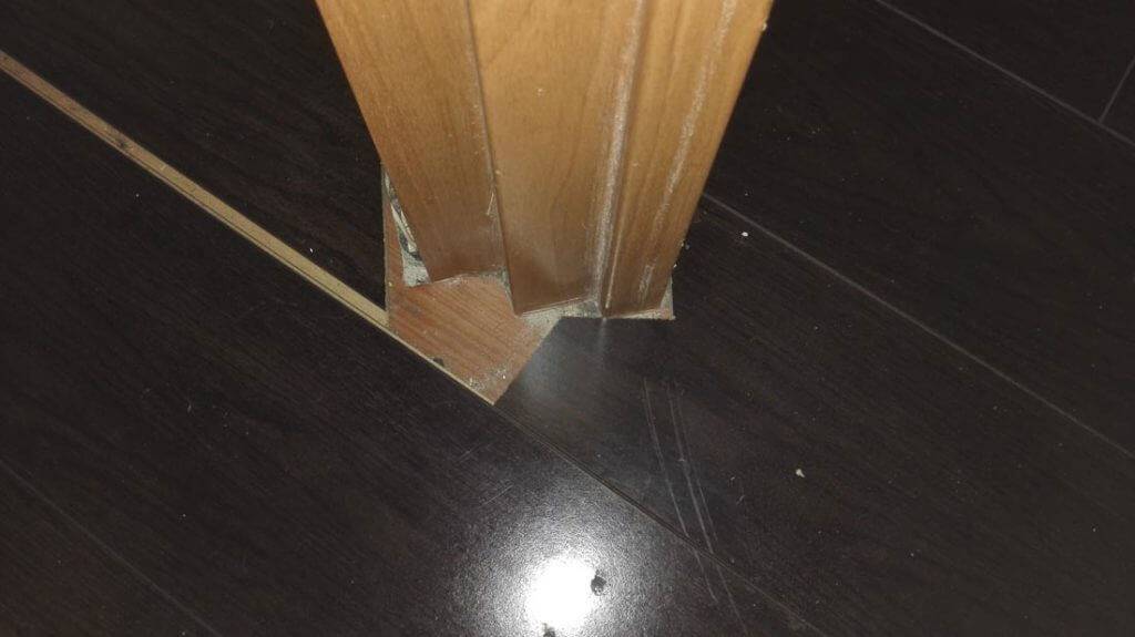 Не качественная стыковка создает щели между панелями и скрип при хождении по полу, как на фото ниже.