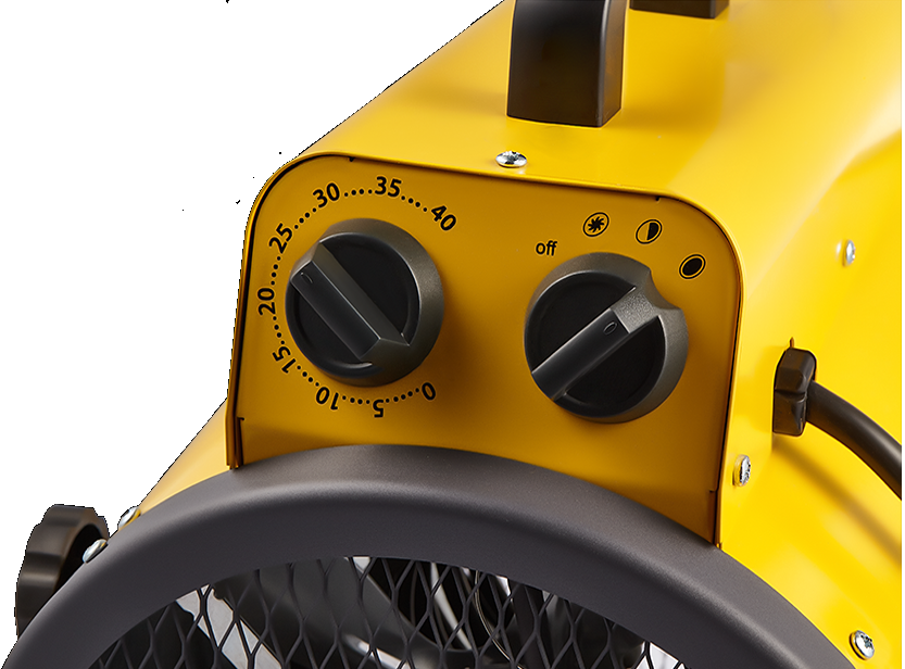 - Легкость в эксплуатации. Тепловые пушки с электрическим нагревательным элементом нуждаются исключительно в подключении к электрической розетке. Для повышения эксплуатационной безопасности в них устанавливаются дополнительные кнопки для изменения мощности. Терморегулятор обеспечивает автоматизацию процессов обогрева, исключает случайный перегрев.