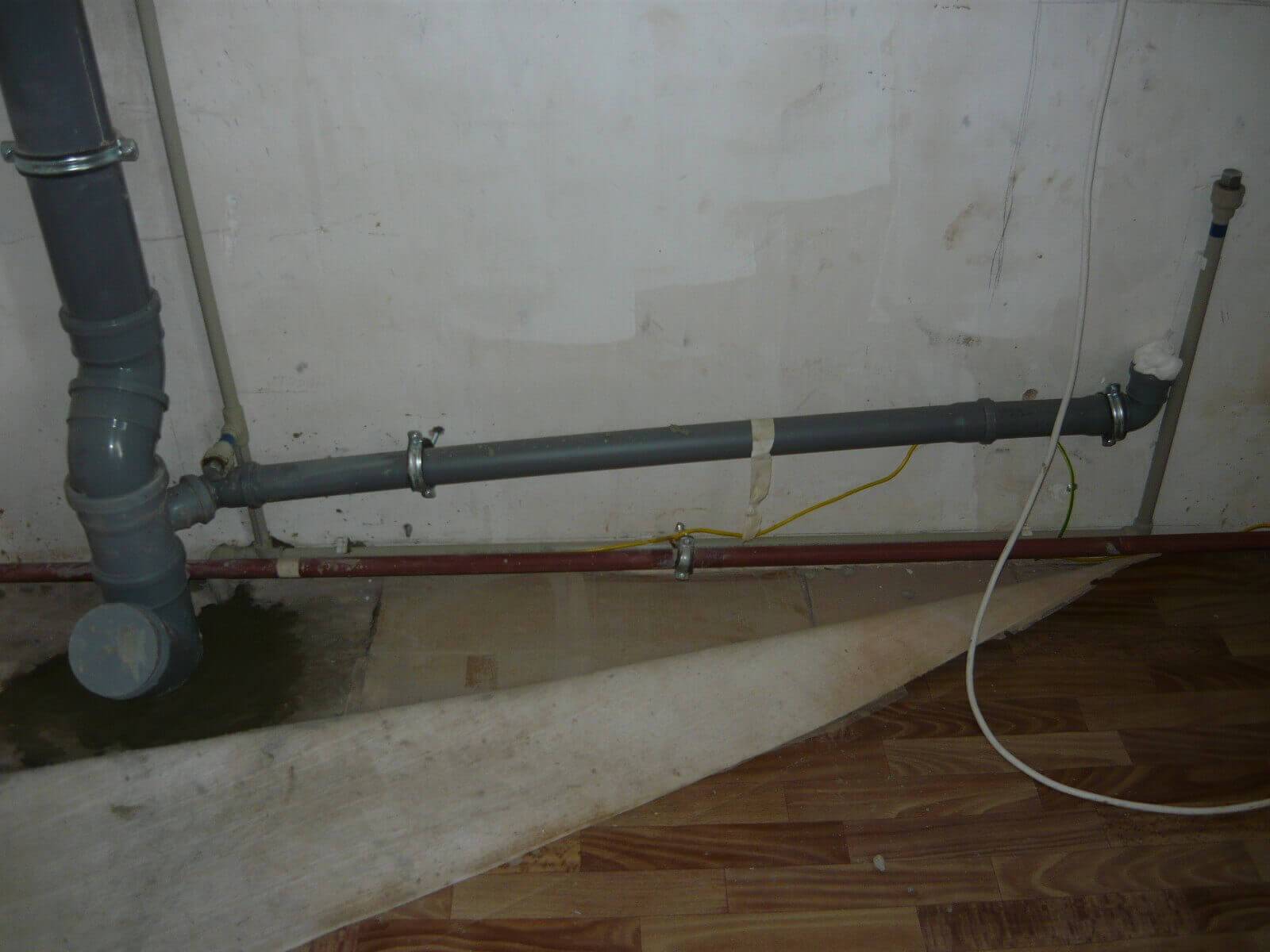 - Трубы из пластика следует прикреплять к стенкам, чтобы избежать искажения. Для этого используют хомуты, которые прокладывают с шагом в пятьдесят—сто см.