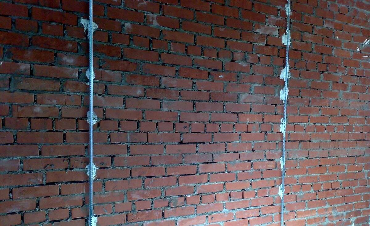 - Если стена- неоштукатуренные кирпичи, то необходимо отстучать излишки раствора. Глубокие щели заделать раствором. Разность по высоте выступов и впадин не должна быть более 10мм.