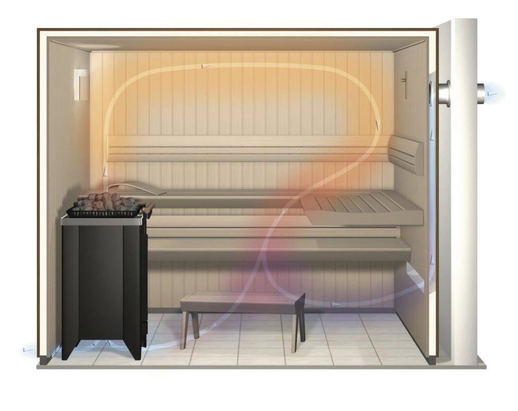- одинаковое качество воздуха в парной, а также в комнате отдыха, независимо от сезона;