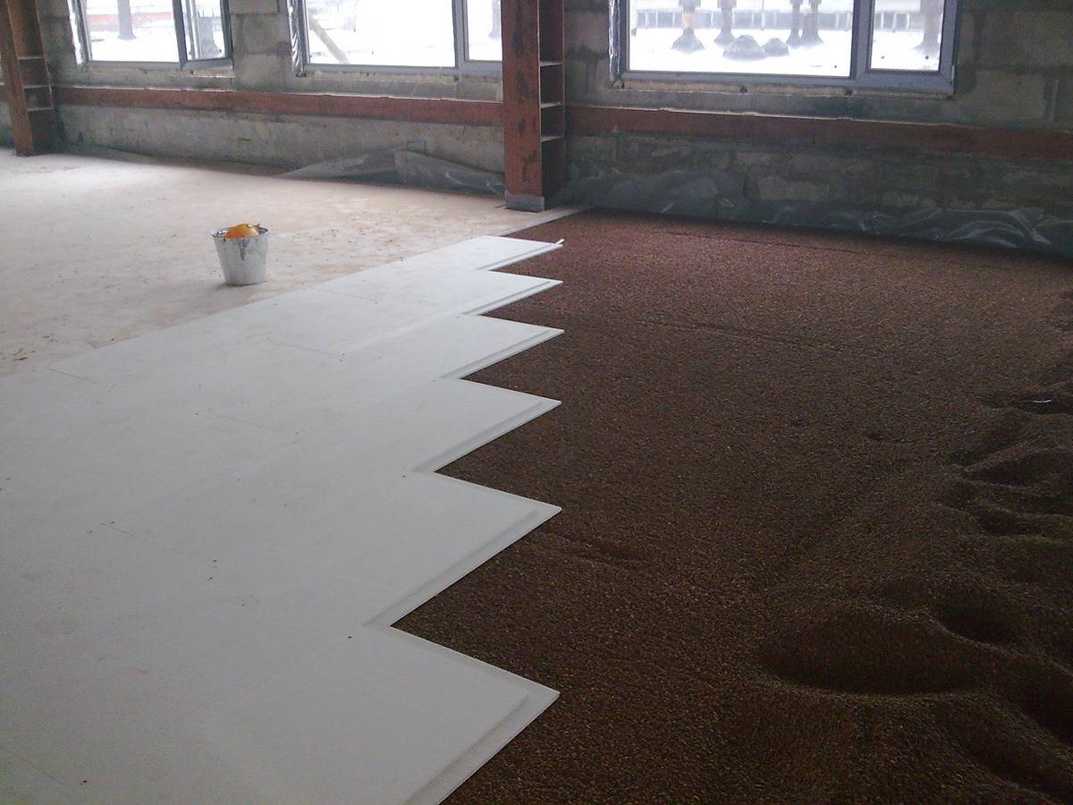 - Сверху укладываются листы фанеры или ДСП, а стыки между ними промазываются клеем ПВА.