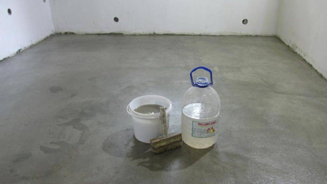 Предварительная обработка поверхностей реализуется на основе жидкого стекла и воды. Оба компонента смешиваются в пропорциях 4:1. Основания покрываются в 2-3 слоя, соблюдая принципы послойной сушки. Дополнительно можно прогрунтовать стяжку, применив раствор на основе 1 части жидкого стекла, 2 частей цементного раствора.